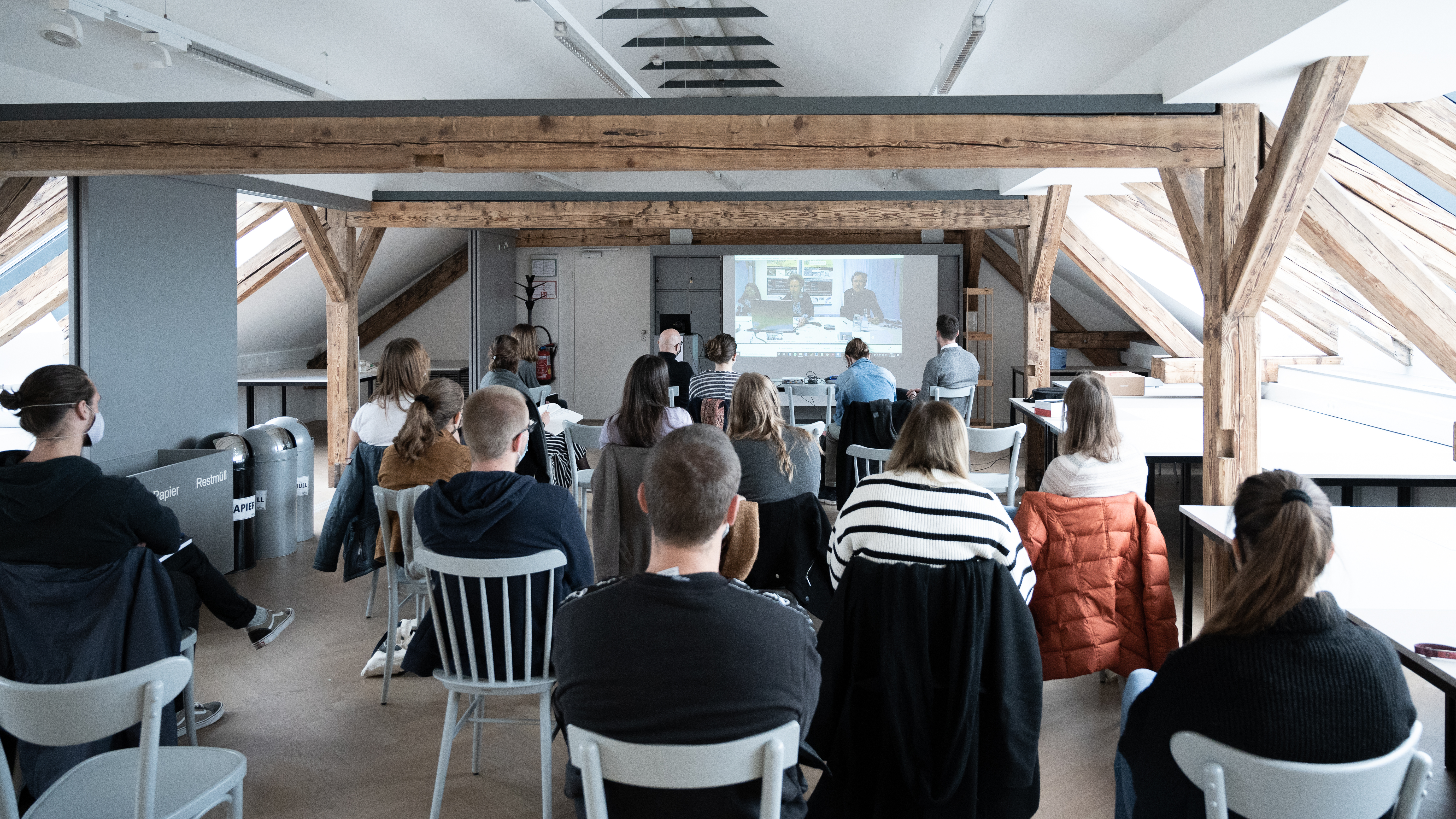 Studierende des Masterstudiengangs Stadtplanung an der RWTH Aachen diskutieren mit Mitgliedern der Architektenkammer BW / Kammergruppe Böblingen über ihre preisgekrönten Studienarbeiten aus dem städtebaulichen Ideenwettbewerb zur Umgestaltung des Sindelfinger Krankenhausquartiers.