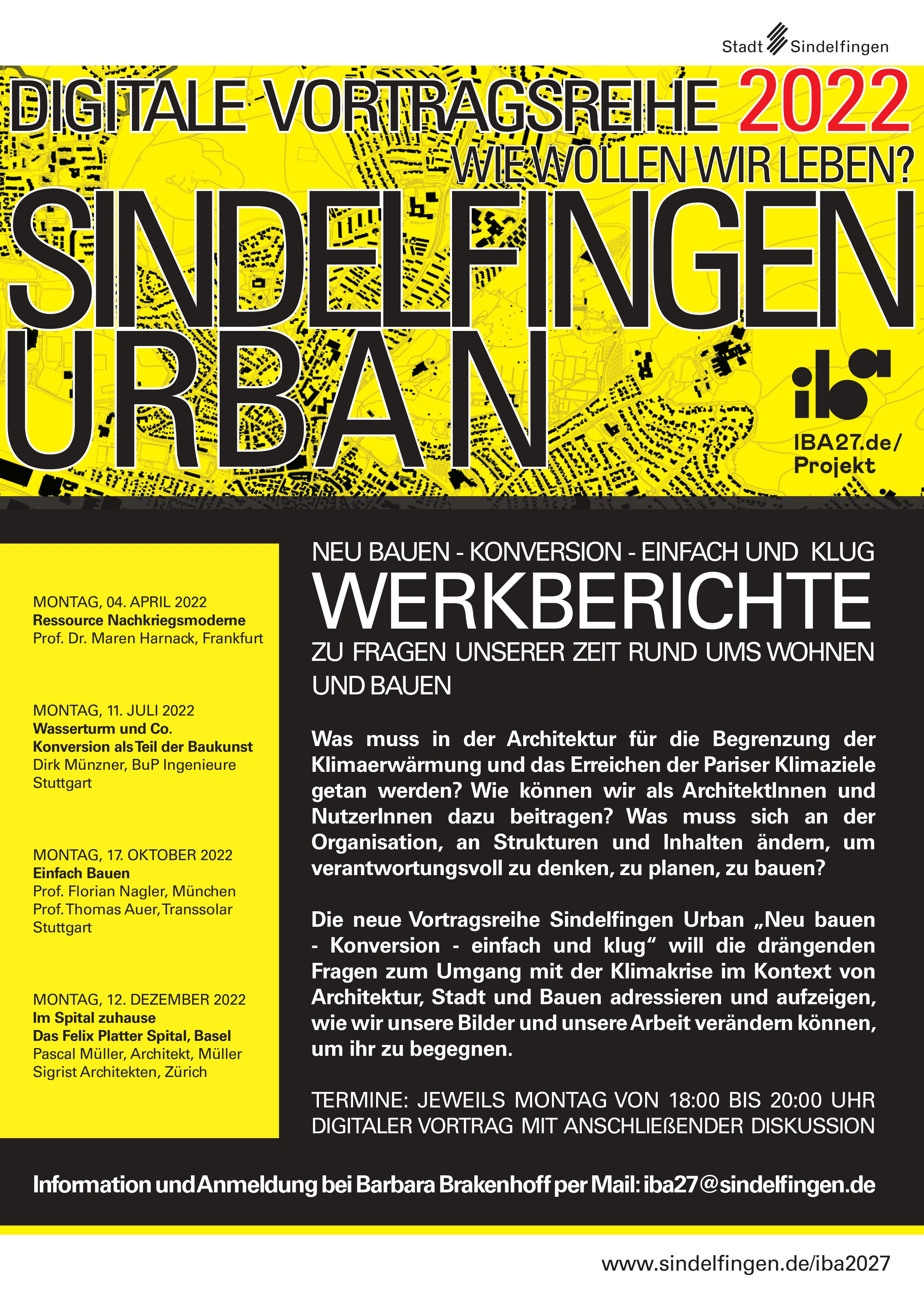 Auskunft und Anmeldung: Barbara Brakenhoff, bitte per Mail unter - iba2027@sindelfingen.de - , wir schicken Ihnen den Link für die Teilnahme an der Veranstaltung zu.