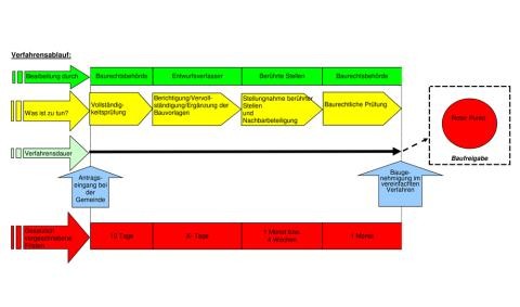 Der Verfahrensablauf und die Fristen entsprechen denen des Baugenehmigungsverfahrens.