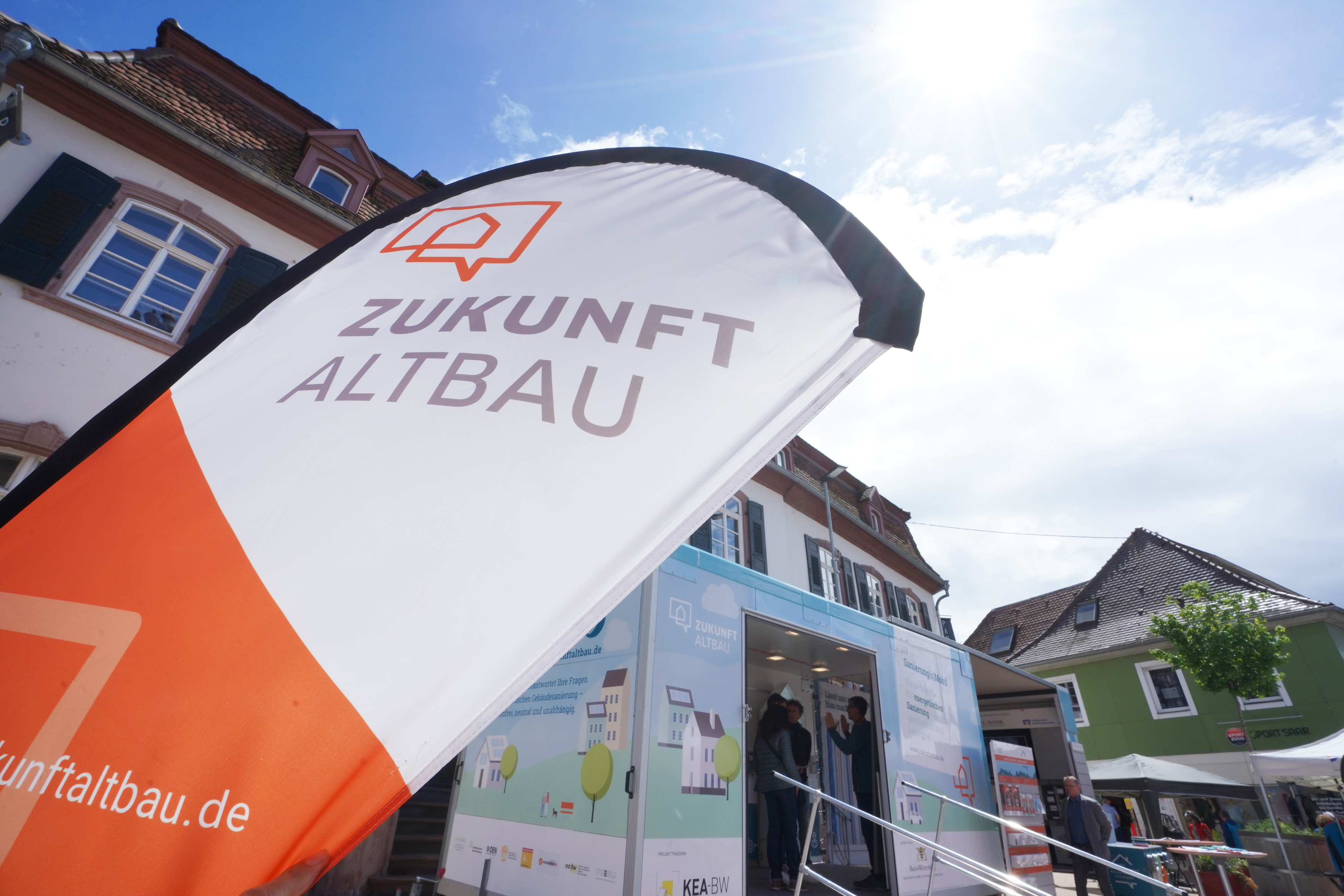 Am mobilen Ausstellungspavillon des Informations- und Beratungsprogramms „Zukunft Altbau“ können sich Hauseigentümerinnen und -eigentümer über Energieeinsparmaßnahmen und Fördermöglichkeiten informieren. Zudem erhalten sie bei Bedarf eine erste persönliche Beratung von Fachleuten aus der Region. Die qualifizierten Energieberaterinnen und -berater zeigen die Vorteile einer gut gedämmten Gebäudehülle und der Nutzung erneuerbarer Energien sowie verschiedene Fördermöglichkeiten auf.In dem rollenden Energiesparhaus von Zukunft Altbau werden die wichtigsten Energietechniken für zukunftsfähige Altbauten anschaulich gezeigt. Neben Informationen zu modernen Heiz- und Lüftungssystemen sowie Solaranlagen gibt es Erläuterungen zu Innen- und Außendämmung, Wärmeschutzfenstern und Verschattungssystemen. Die Besucherinnen und Besucher können sich am Mobil dem Thema Sanierung zudem interaktiv und spielerisch nähern. Eine Anmeldung ist nicht erforderlich.