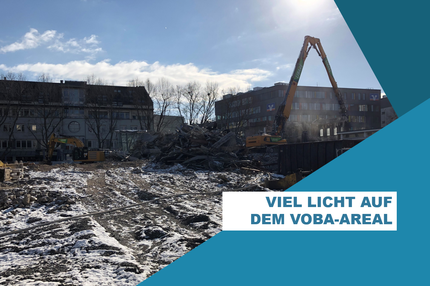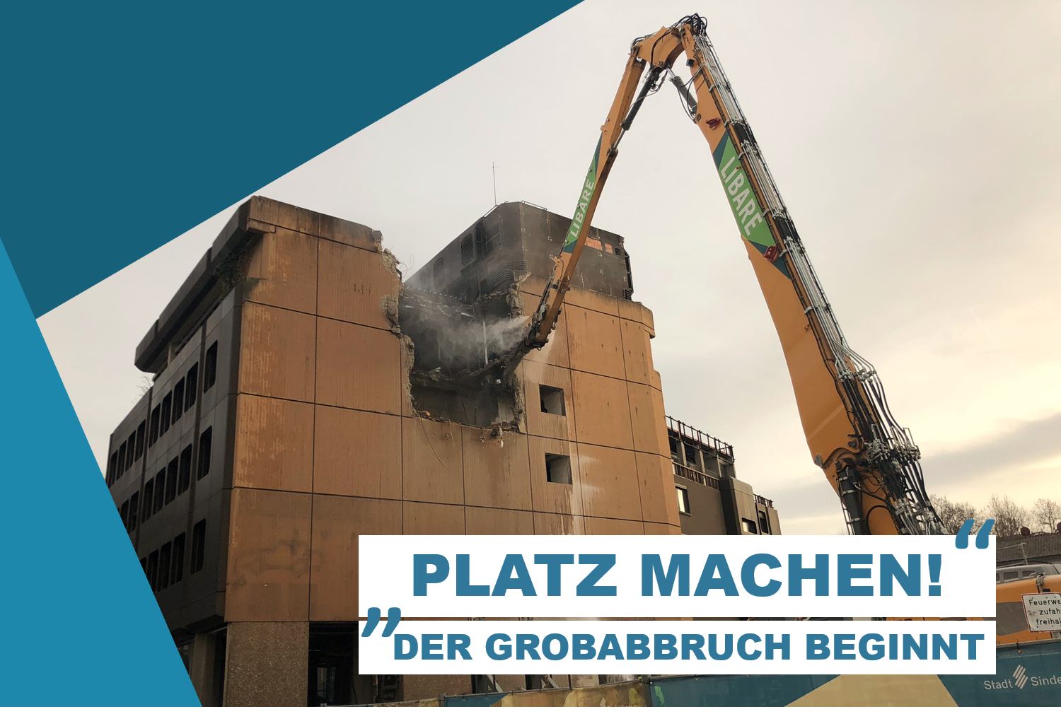 Im Dezember 2017 hatte der Gemeinderat den Abbruch der ehemaligen Volksbank in der Gartenstraße 14 beschlossen. Nach einer Planungsphase und vorbereitenden Maßnahmen im Umfeld des Gebäudes, hatte der Rückbau im Oktober 2019 begonnen. Auf dem Weg zu einem neuen Quartier für die Sindelfinger Mitte war der Abbruch der alten Volksbank ein erster wichtiger Schritt. Während der achtmonatigen Rückbauphase wurden insgesamt rund 18.750 m³ Bauwerk abgebrochen, soweit möglich recycelt und für die Rückverfüllung der rund 4.300 m³ großen Baugrube verwendet.